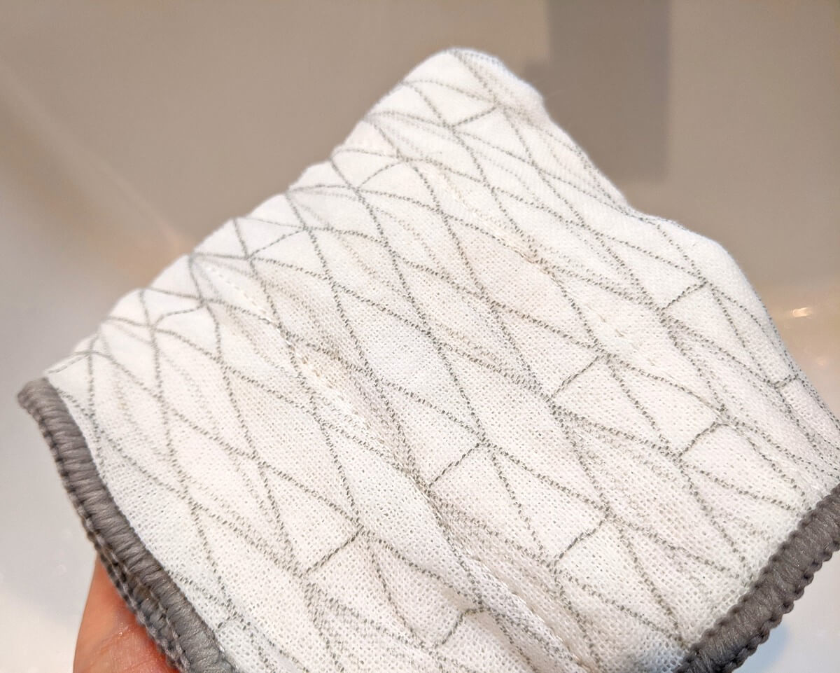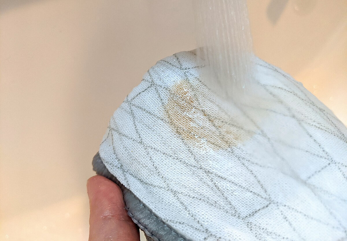 実際にお湯で洗ってみると、パリッとハリのあるふきんが少しずつ柔らかくなっていき、手にどんどん馴染んでいく感触がなんだか面白い♪ 今まで使っていたふきんが綿素材だったので、なおさら新鮮で楽しかったのかもしれません。