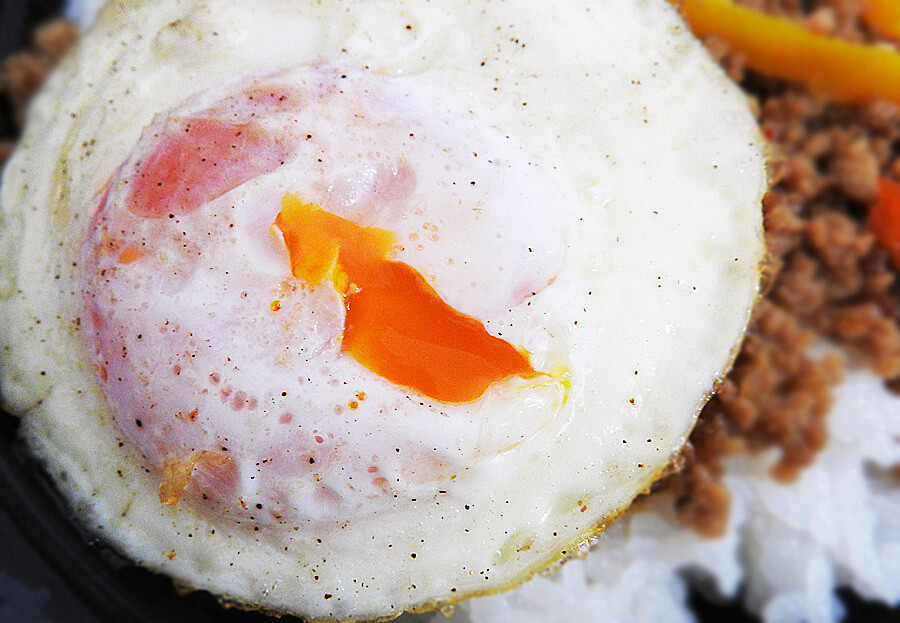 半熟の目玉焼きと混ぜて食べるとまろやかに