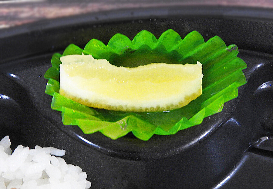 ガパオライスの量に対して目玉焼きは小さいため、目玉焼きの方を先に食べ終える人が多いと思います。残りのガパオライスに味の変化をつけたい場合は、弁当中央部分にあるレモンをガパオライスの上で絞って食べてみると酸味と辛みが良い感じに混ざって良いですよ。