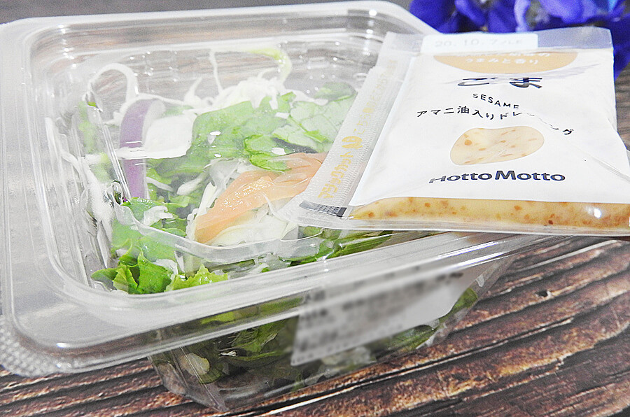 ほっともっと「グリーンサラダ|アマニ油入りごまドレッシング」150円(税込)実食レビュー