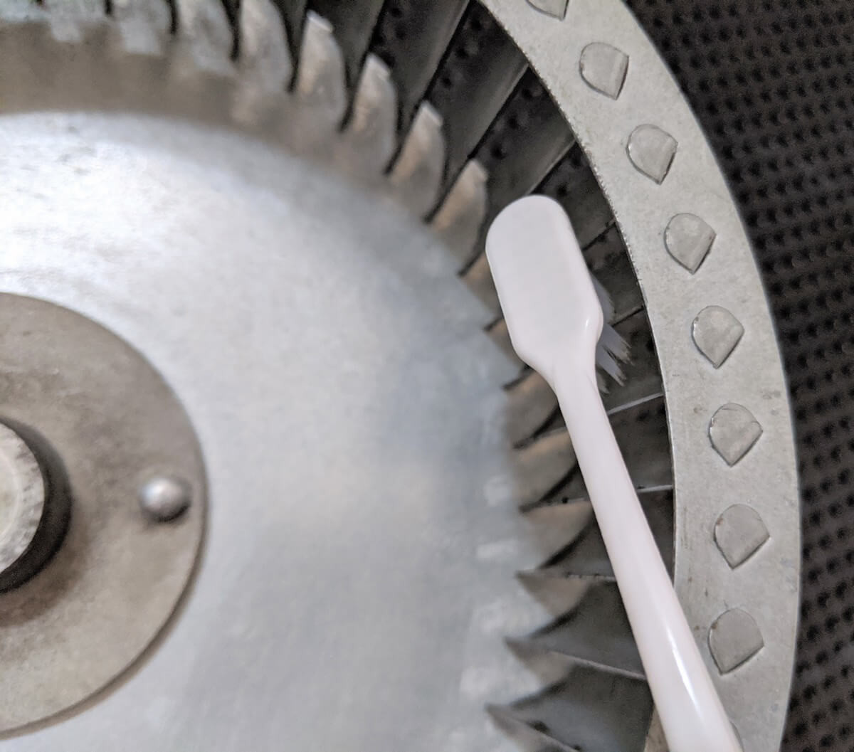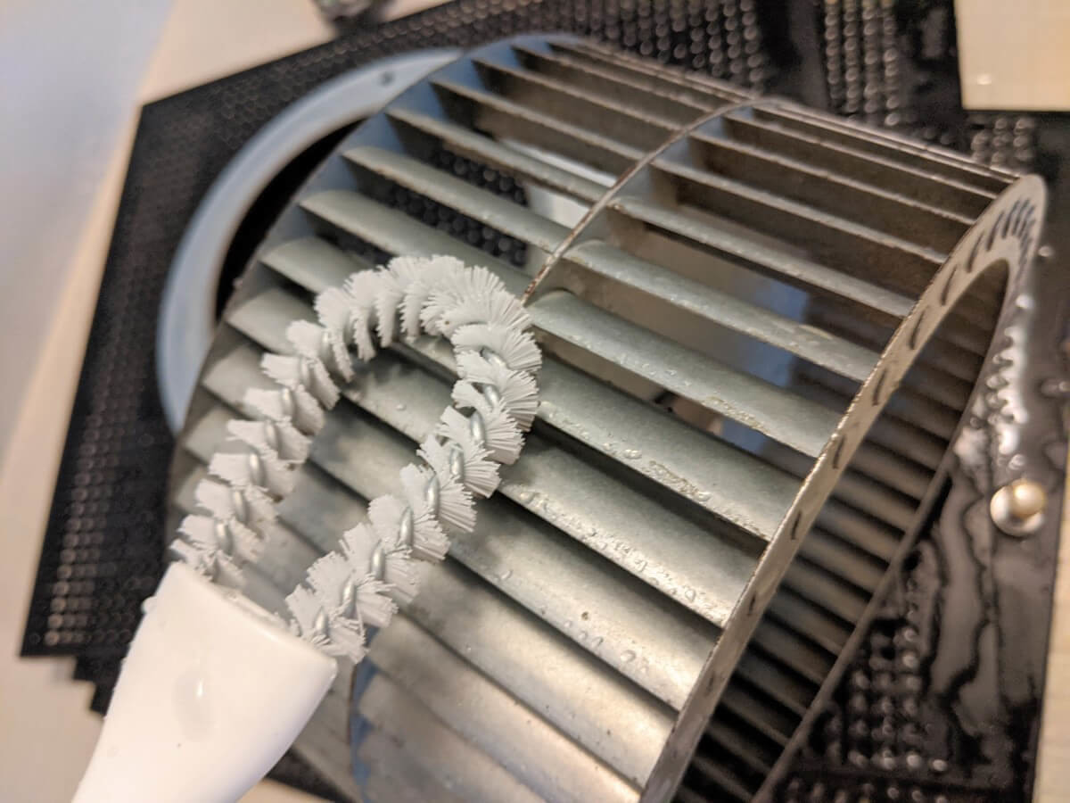 特に汚れがひどかったのがファンの内側。 ここは古歯ブラシを使って、細かな部分の汚れもしっかり落とすようにします。