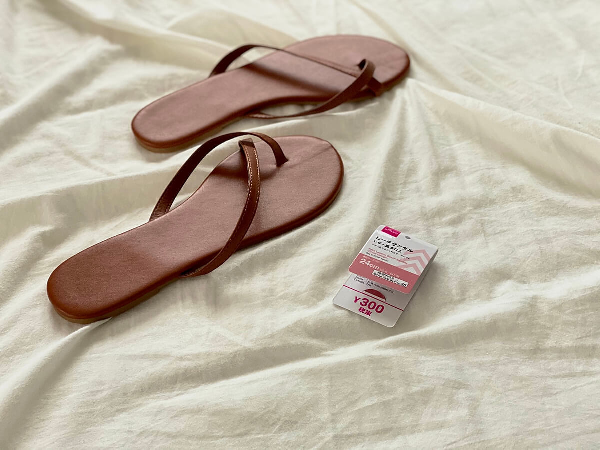 - 「レザー風クロスビーチサンダル」 300円(税別)