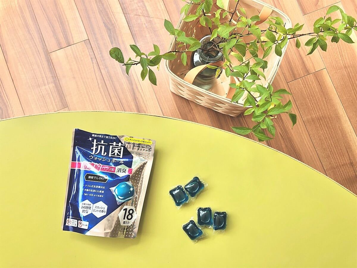 (1個で40Lまで洗濯可能と神コスパ) - 抗菌作用が24時間続くので、梅雨時期の「部屋干し」も安心!