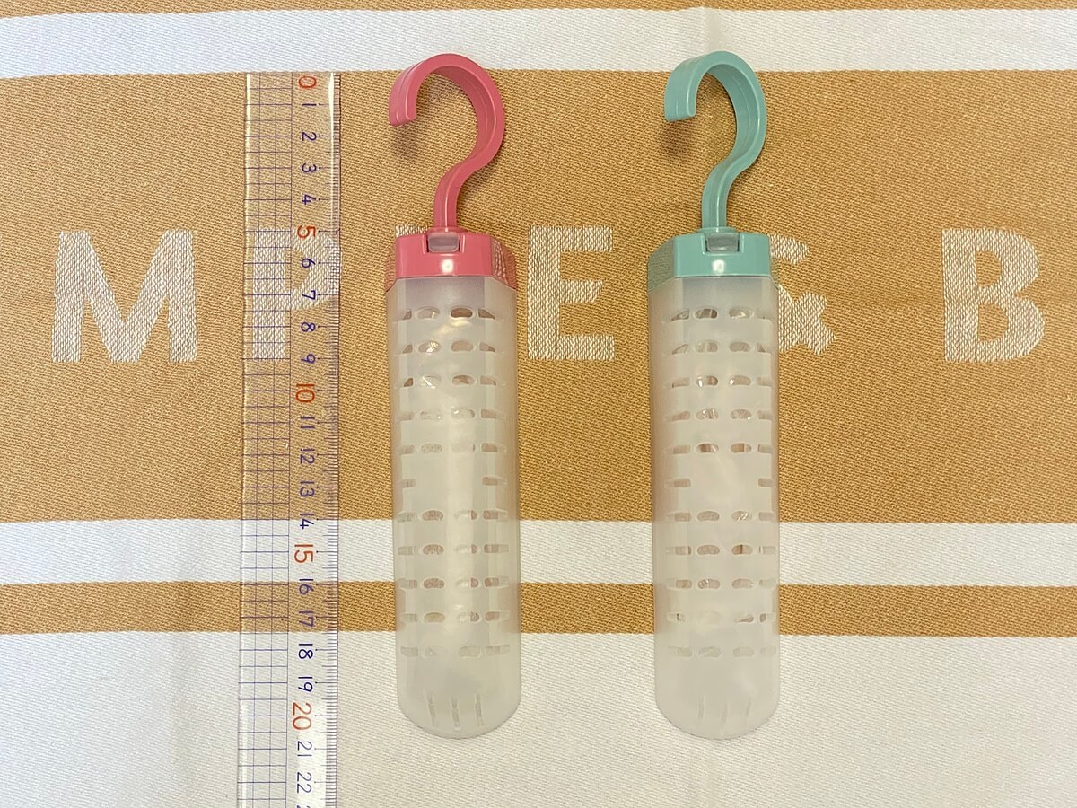 見た目はシンプルで、大きさも20cm弱とコンパクトで頼りなく見えるけど、とにかく使えるんです。これをクローゼットにかけておくだけでしっかり除湿してくれます。
