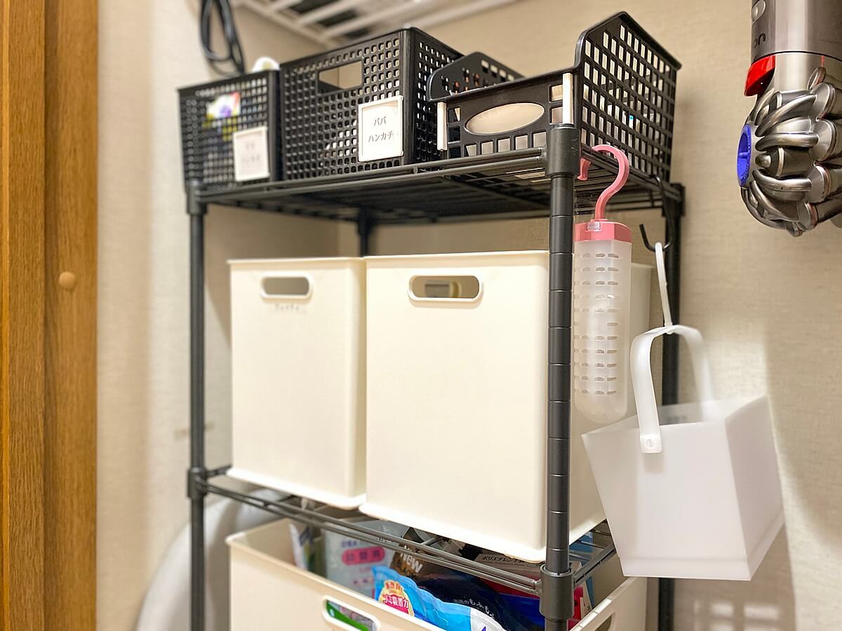 室内に比べて湿気がたまりやすい廊下の収納には、スチールラックに下げて使っています。ハンカチやティッシュを収納しているので、カビ臭くなるのは絶対に避けたい場所です。この除湿剤を置くようになってからは気にならなくなりました♪