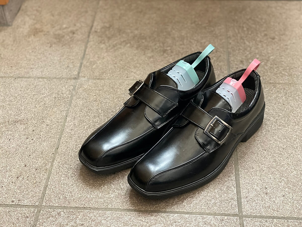 夫の靴にも入れてみたら、これまたピッタリ!靴のかかとにフックを引っ掛ければ、ズレる心配もありません!もちろん、繰り返し使えるので、頻繁に除湿しています。