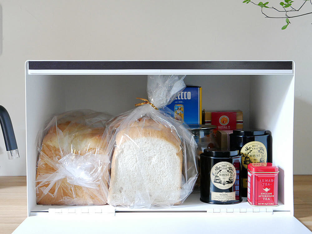 パンやシリアル、紅茶などをすっきりとまとめて収納できるシンプルで大容量のブレッドケース。