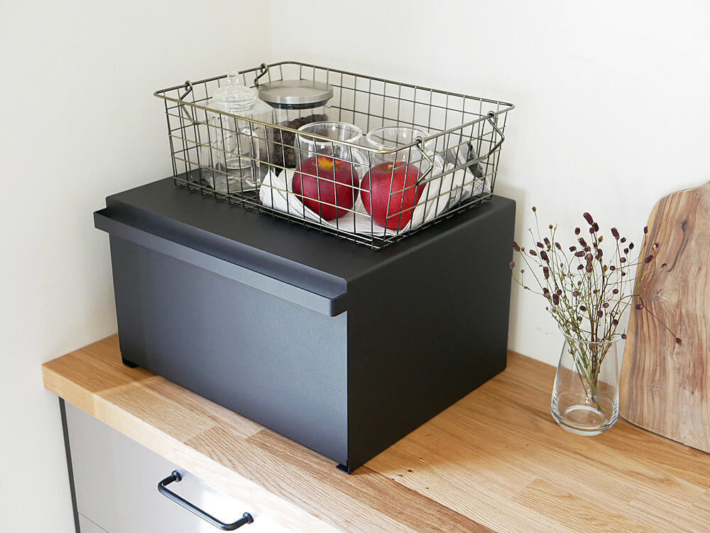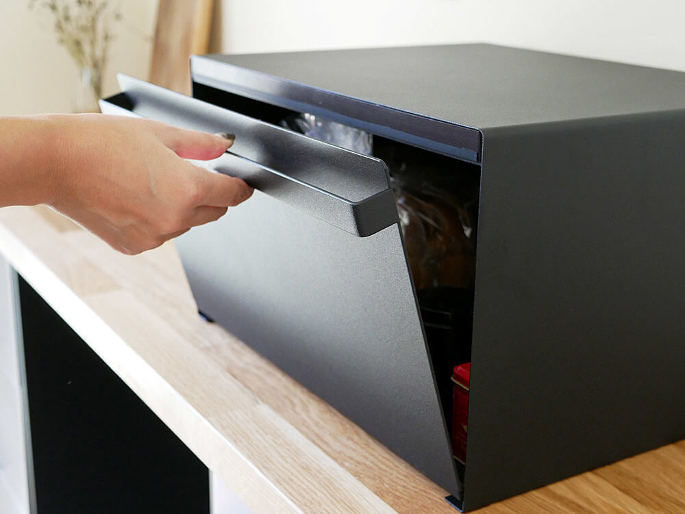 パンをおいしく保存するのはもちろん、キッチンカウンターなどで雑然としがちなパンやお菓子、調味料などを隠しながら美しく保存できる収納ケースのご紹介です。