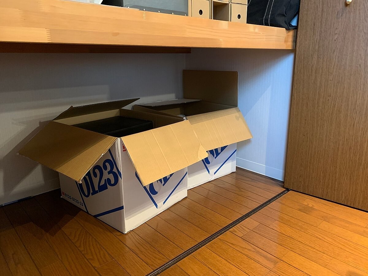 引っ越してしばらくの間は、とりあえず段ボールに入った荷物をそのまま入れておくずぼらスタイルで過ごしていましたが、ようやく納得のできる収納ボックスをニトリで発見しました。