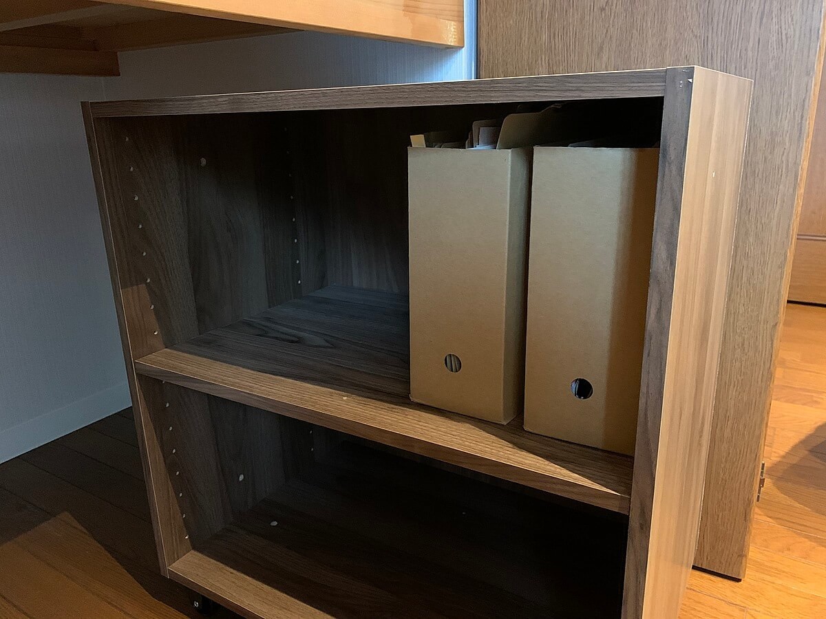 A4サイズの書類を横向きに入れた無印のファイルボックスを収納できました。