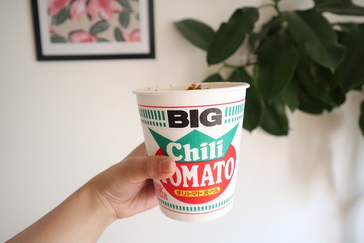 今、どはまりしている食べ方が、「カップヌードルのチリトマト」に「フライドオニオン」をちょい足しして食べること!あれば「パセリ」も加えると、さらに本格味になって絶品です!
