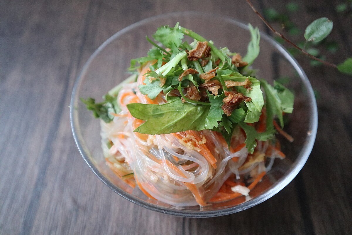 さっぱりとした春雨サラダにコクがプラスされます。