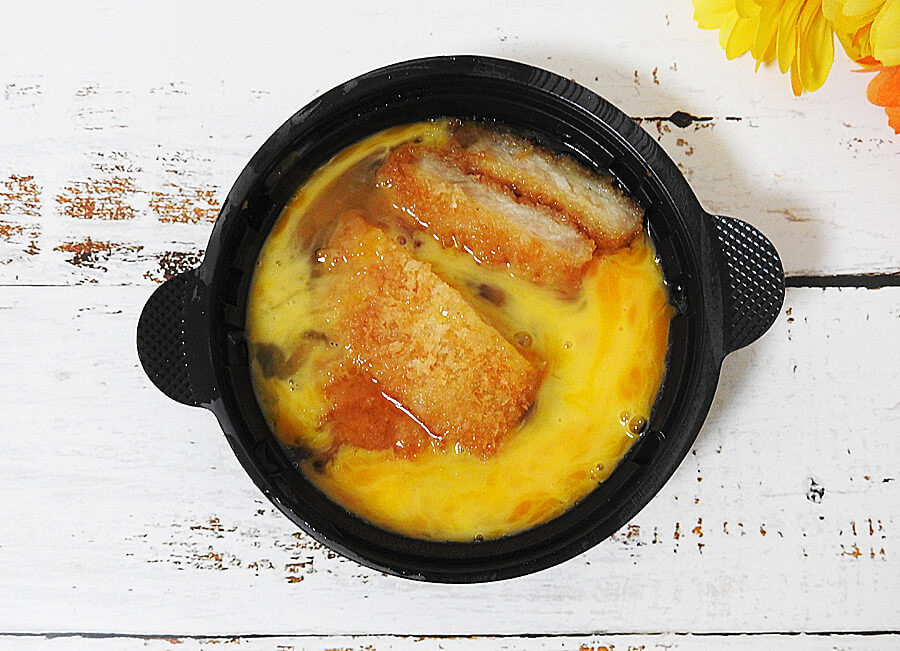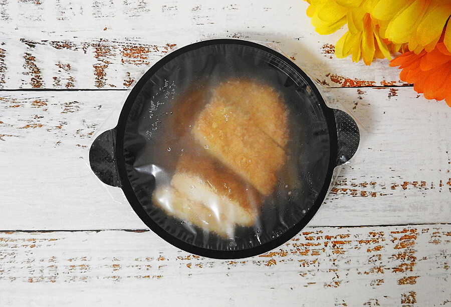調理は「電子レンジのみ」です。途中で卵を割りほぐしてカツの上に入れる……という工程がありますが、電子レンジ調理だけで完成しますよ。