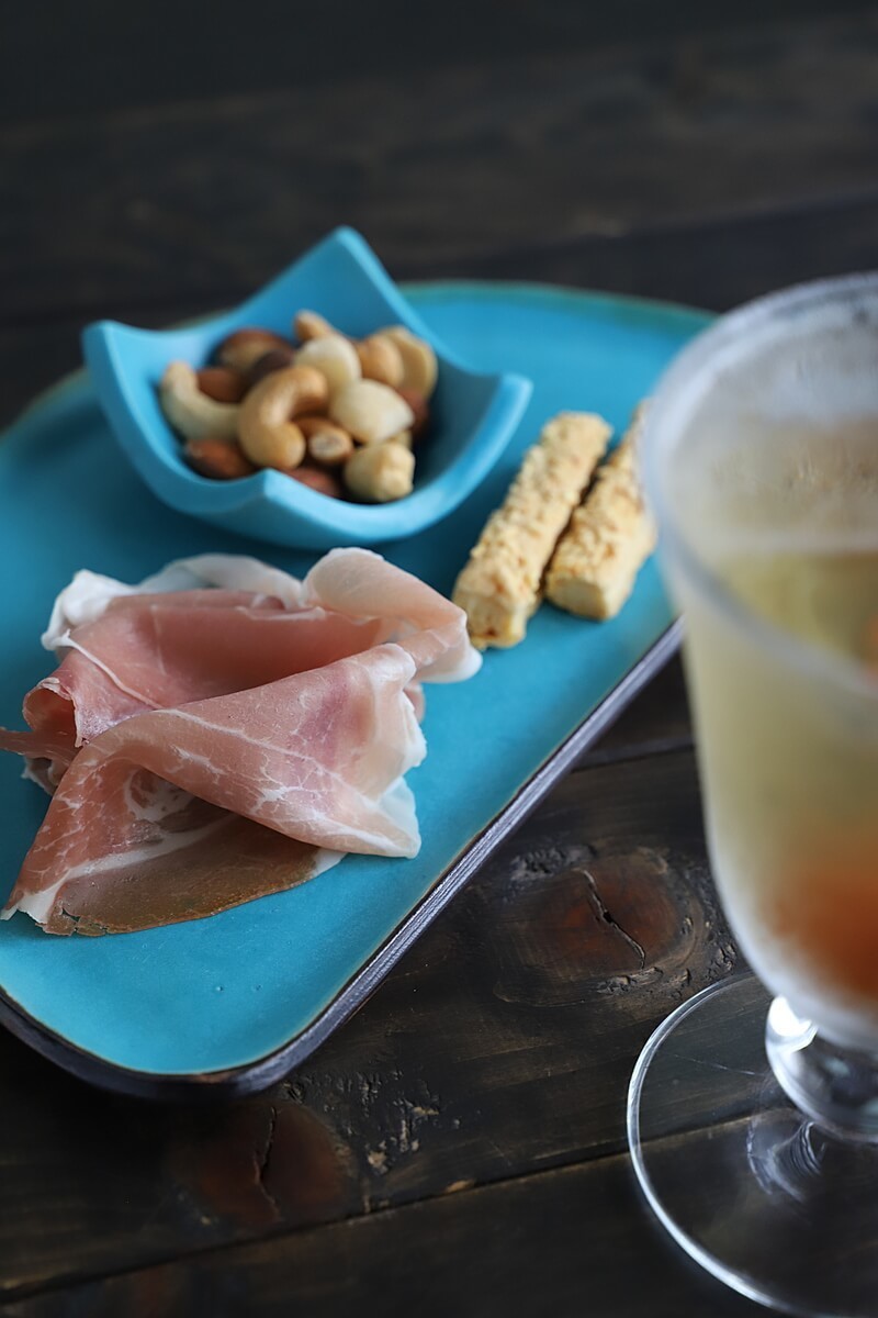 コストコのプロシュート、コストコのナッツ、業務スーパーのチーズスナック。