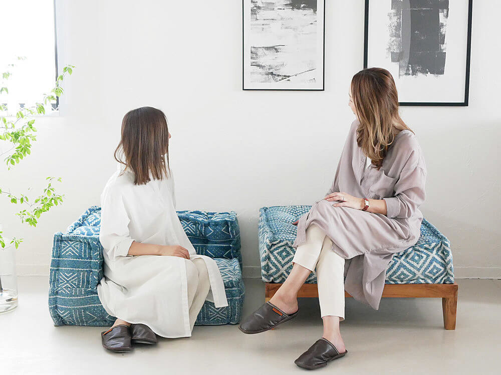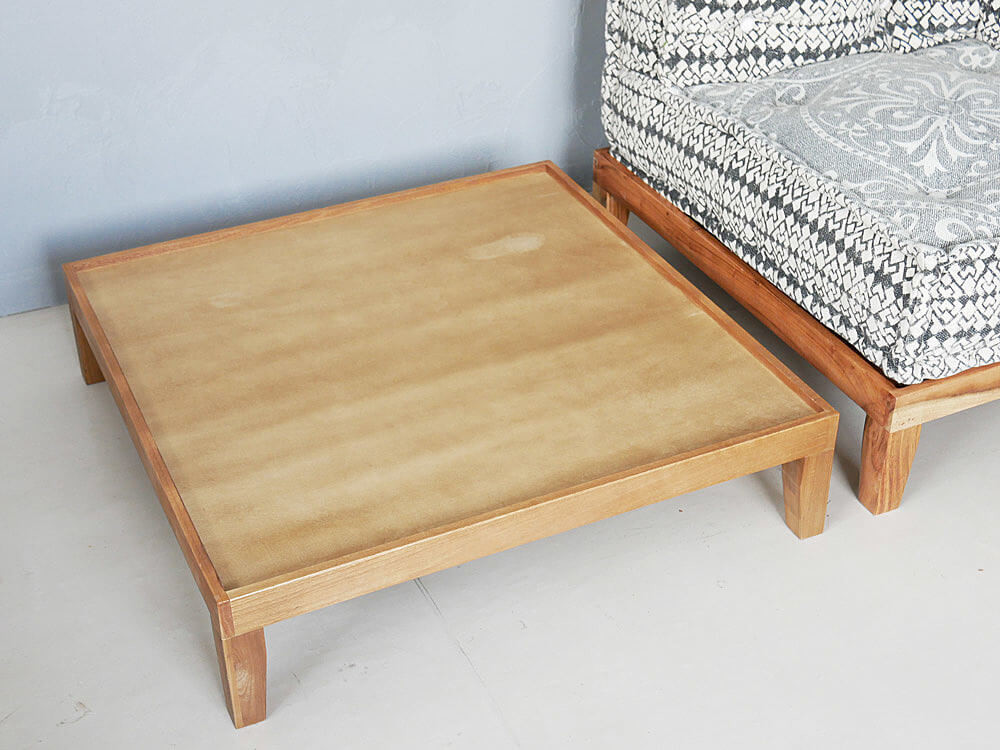 インドテイストをふんだんに活かした各ソファに合うよう、木製の台座も用意しています。