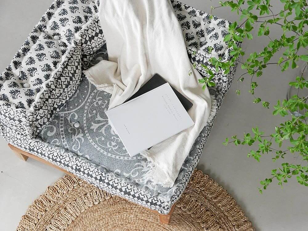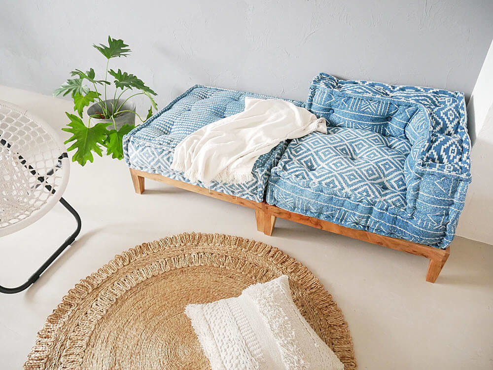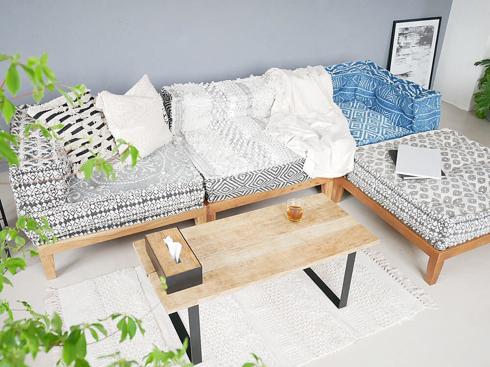 コンパクトなハイソファを自分で作れちゃいます。異なる柄でも統一感のある柄なので、ゴチャつかずしっくりまとまりますね♪