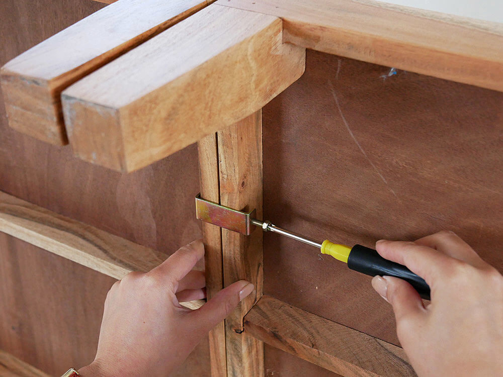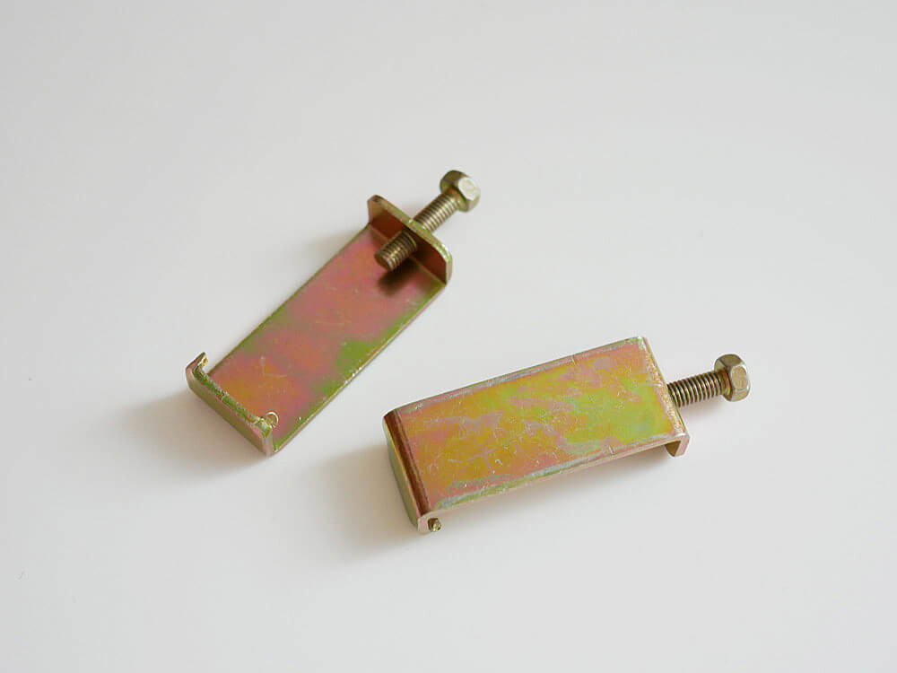(1)連結パーツで挟み込み、ボルト部分を回します。