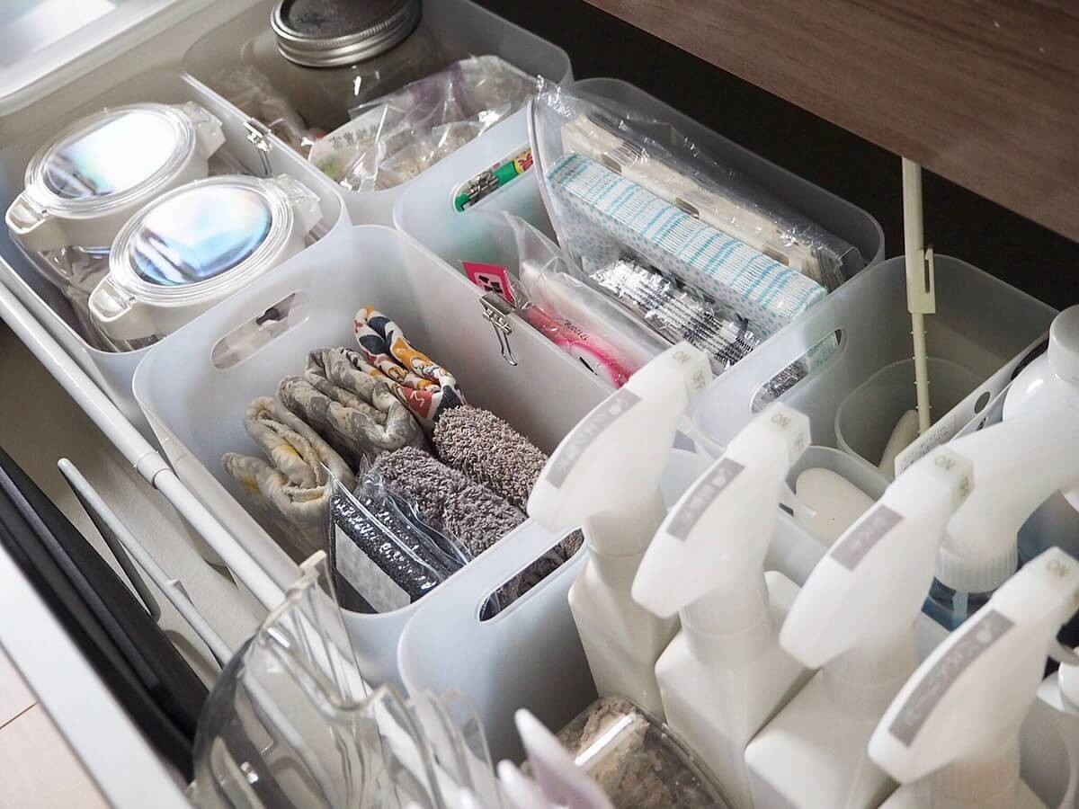 ボックスにまとめる事で上からも見やすく、取り出しやすくなりました。掃除をする時もボックスごと取り出せばいいので掃除の時短にも繋がっています。