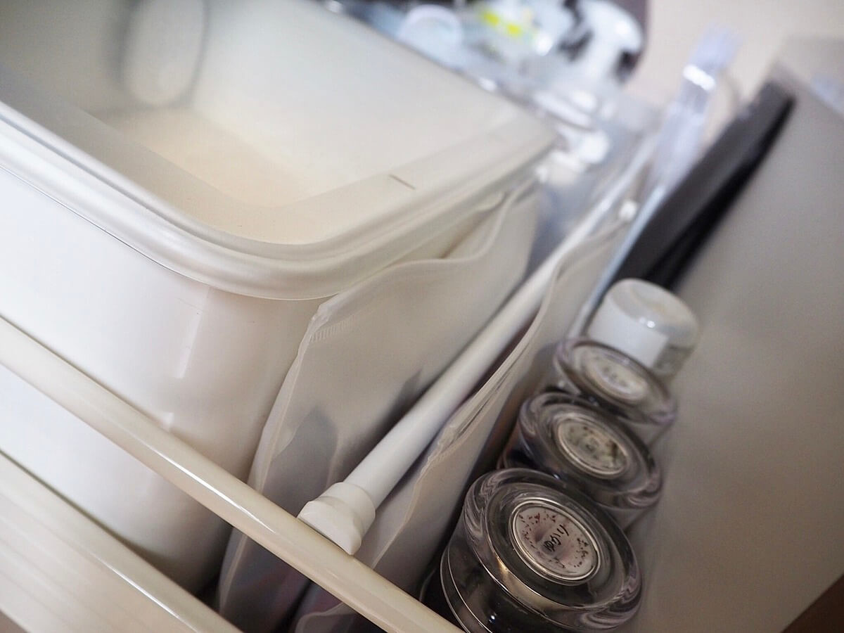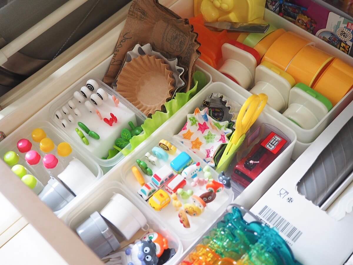 娘が毎日お弁当を持っていくので、ピックやカップはワンアクションで取り出せるように収納しています。