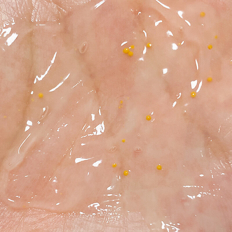 公式サイトにも説明はなかったので、ツブツブの詳細はわからないですが、ビタミンかな…?と予想。肌に馴染ませるとツブツブはなくなっていきますよ。
