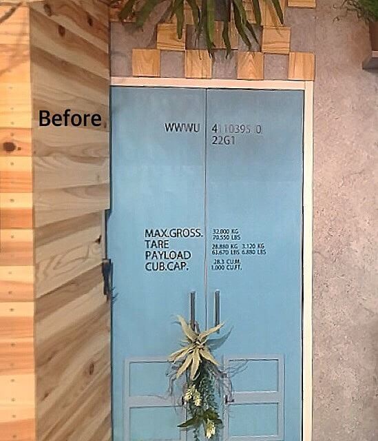 扉にはリビングに馴染むように貼って剥がせる壁紙を貼りリメイクしたり、ドライフラワーを飾ったりしていました。