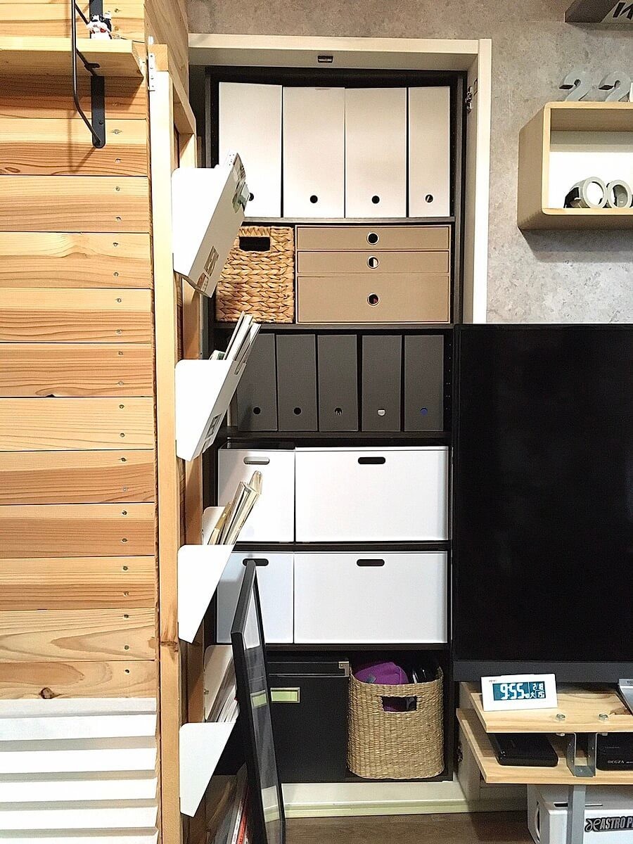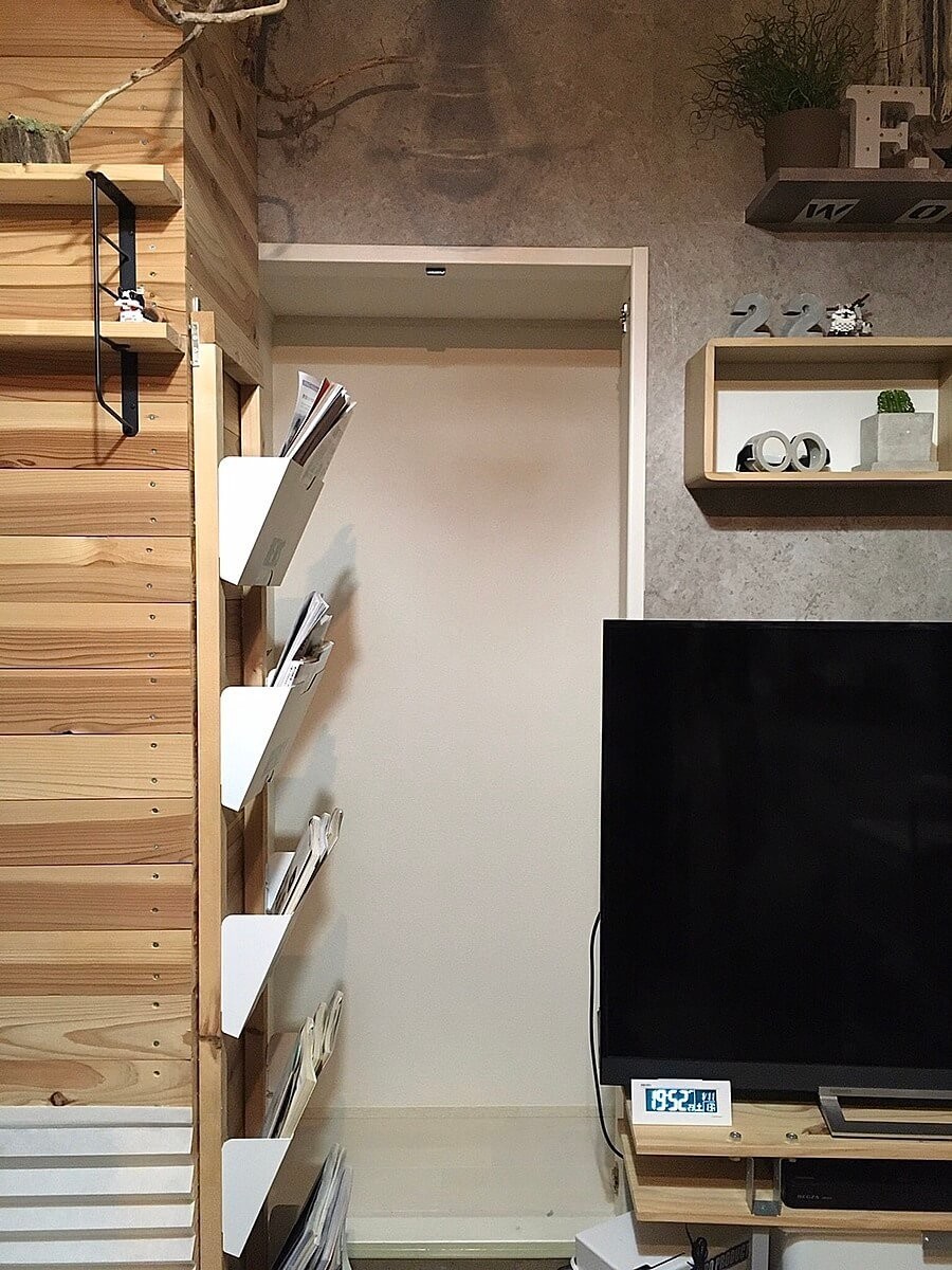 今回このクローゼットをリビングに収納スペースを増やすため、見せる収納スペースに簡単なDIYで模様替えしました。