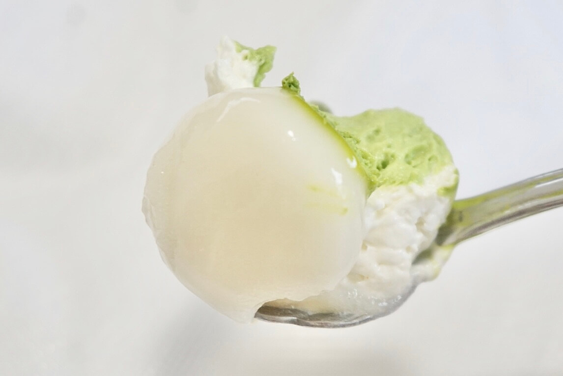では、抹茶ホイップの部分から下までスプーンをさして、早速いただきます!
