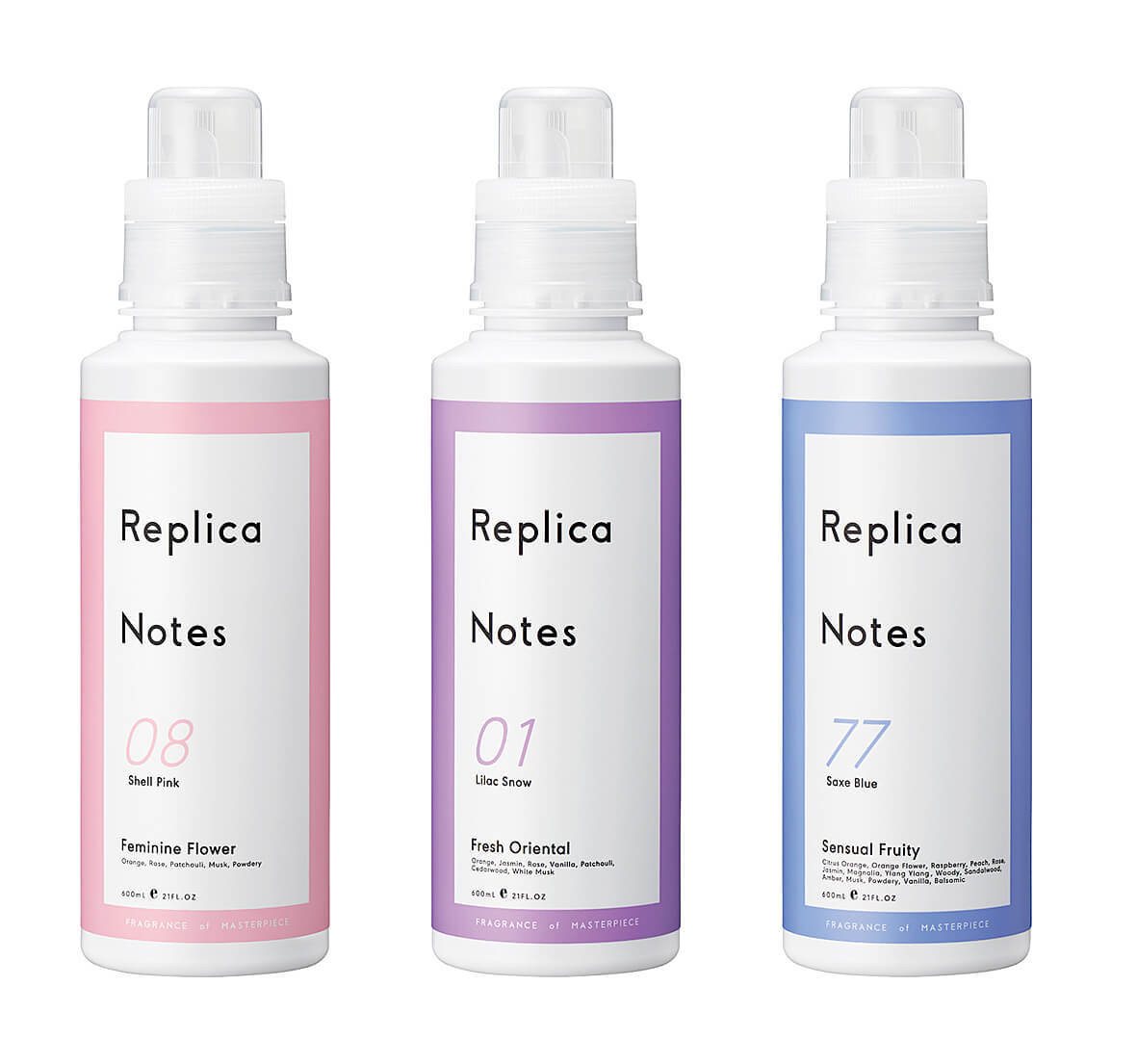 「Replica Notes(レプリカノーツ)」は、多くの女性が憧れる名香のノート(Note:香調)にインスパイアされて生まれた、ファブリックケアブランドで、洗練された3種の香りがクリエーション(創造)されました。
