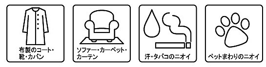 汗・タバコ・ペットまわりの臭いの「3大生活臭」を、臭いの元から消臭。