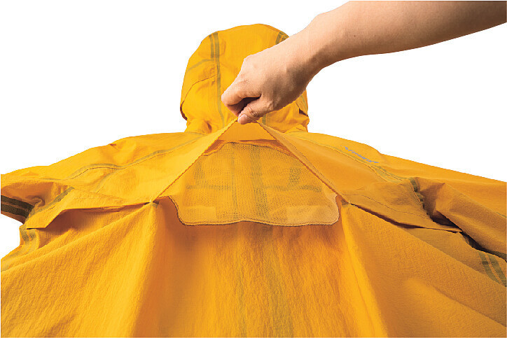 持ち運びに便利な「収納袋」付きで、使わないときは袋に入れてしまっておけば、コンパクト。雨が降ったらさっと着られます。