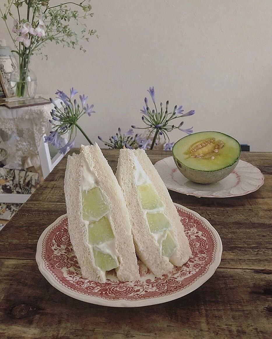 @___k.a.r.i.n___さん作のすてきなフルーツサンド。中身はメロンとマスカルポーネです。