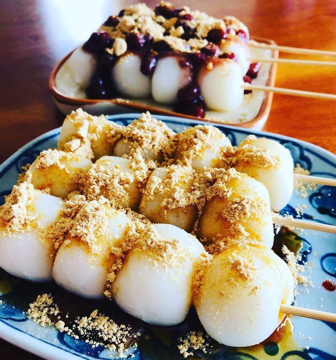 1kg入りの冷凍白玉を串団子にアレンジ。 ひとつずつ串にさしたら、きなこやあんこをのせて完成♪