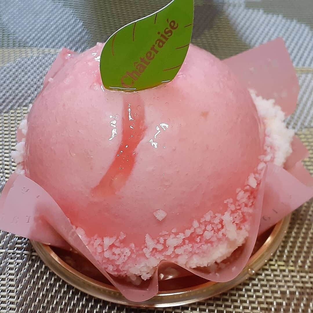 丸ごと桃をモチーフにしたインパクトのあるケーキ。 7月8日から発売されたのですが、SNSでかなり注目されている一品です。