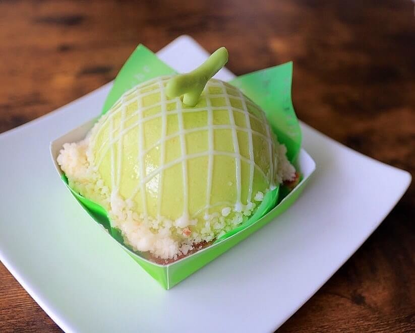 販売地域が本州のみなのですが、その存在感から人気のケーキ。 ふわふわのスポンジの上にカスタード入りホイップクリーム、メロンムースがつまっています。