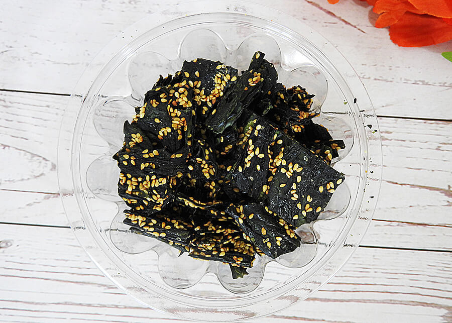 わかめにはごまがまぶされていて、甘めの味付けに。例えるのであれば、醤油せんべいっぽいですね。