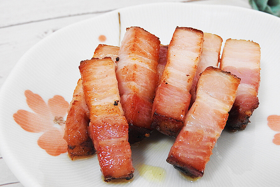 はじめて「7日間漬けこんだベーコンブロック」を焼かずにそのまま食べるよりは、フライパンで焼いてから食べた方が格段に美味しくなりますよ。