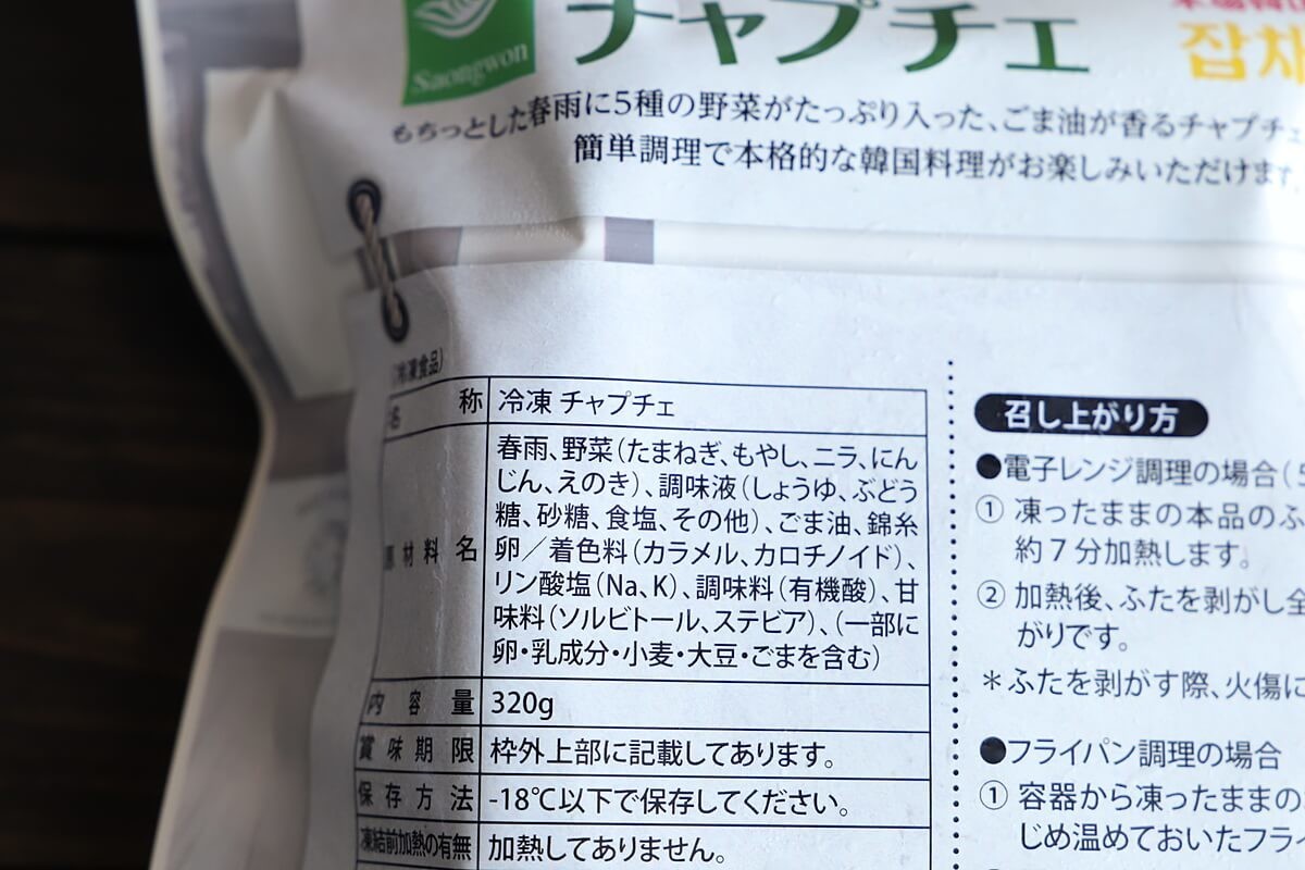 韓国産 Saongwon 冷凍品 チャプチェ 320g入り 298円(税別)