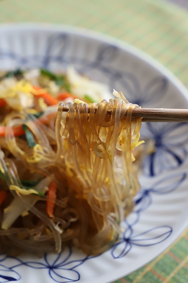 韓国春雨は、さつまいもでんぷんを使い、一般的によく食べられている緑豆春雨よりも太くもちもちとした食感が特徴ですね♪