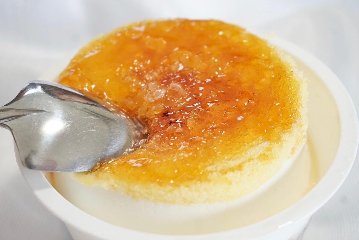 ブリュレは炙られているかのような焦げめがついていて、砂糖は大粒でジャリジャリした食感です。
