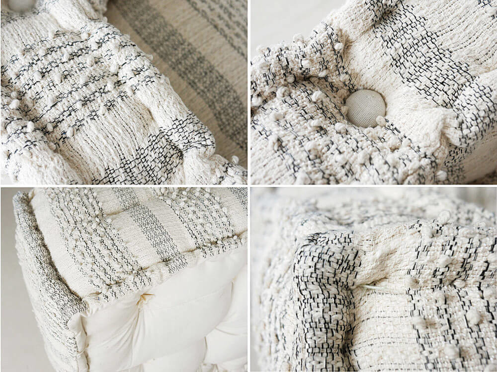 同生地で一体感のあるアーム、ポコポコした手触りが楽しめる立体感、ツイードのような上品さに、パイル地のような柔らかな肌触りで贅沢感満載です。