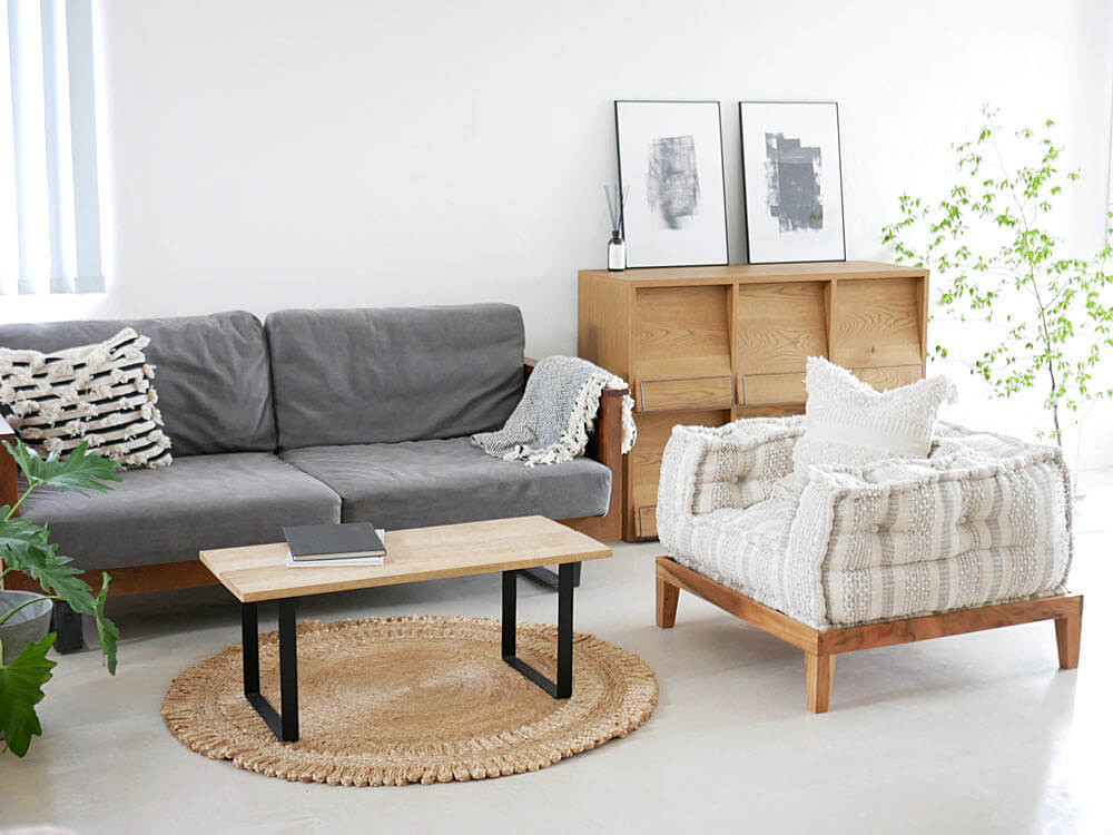 メインソファーと組み合わせてお部屋作りを楽しんでも◎。雑多に感じさせない色味とバランスで、どんなテイストでも馴染みやすい粋なソファです。