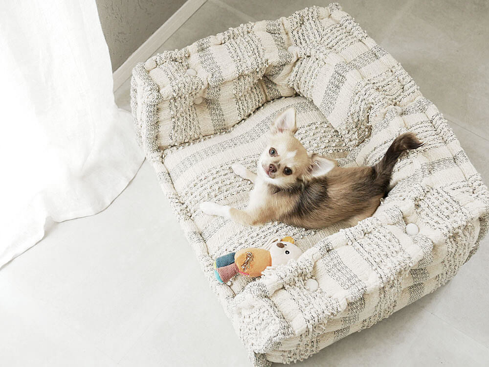 キッズソファは、子どもだけでなくペット用としても使っていただけるサイズ。インテリアの雰囲気をこわさない、オシャレなペット用ベットをお探しの方におすすめです。