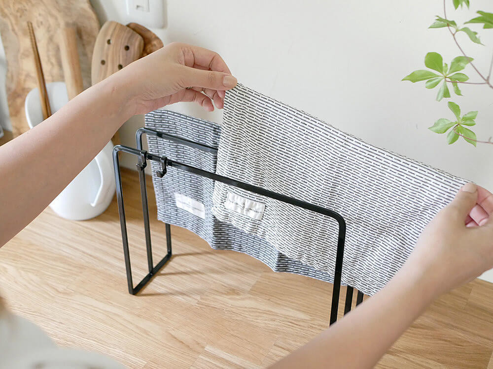 さらに長さのある布巾には縦置きしちゃえばいいんですね。