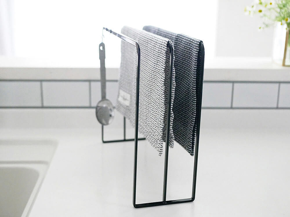 掛ける物の長さで縦置きも横置きもできる、スタイリッシュな3枚掛けのYAMAZAKI「布巾ハンガー」をご紹介します。