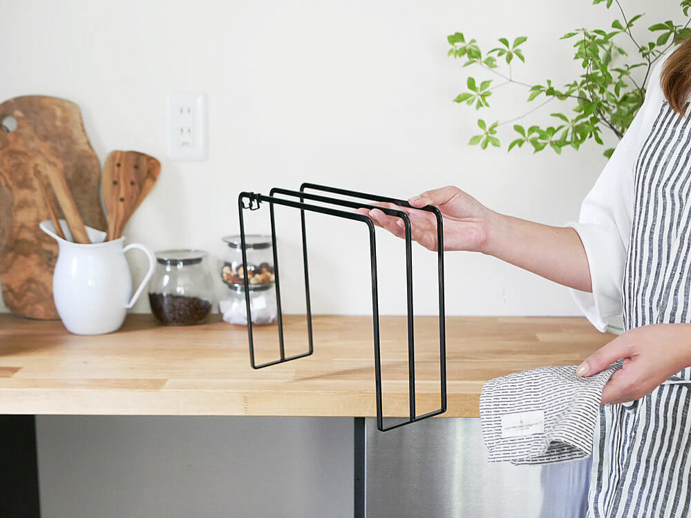 せっかくならキッチンのインテリアに馴染むかっこいい“布巾掛け”に投資してみては。小さな変化で大きな満足感を得られちゃいます。