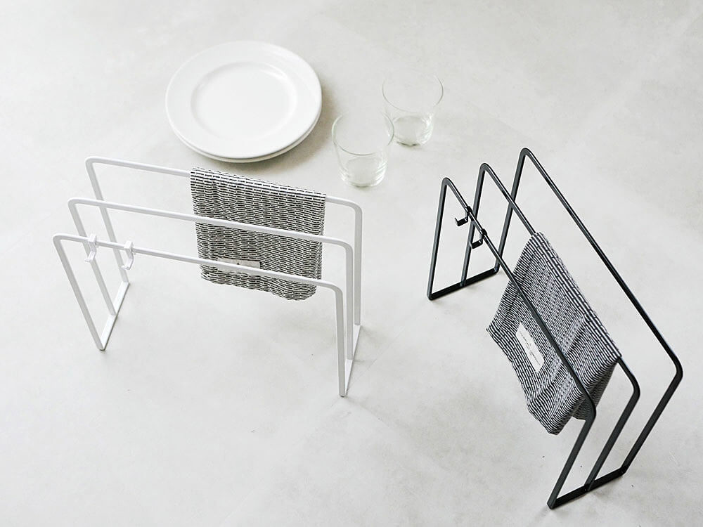 この布巾ハンガーは、軽いのに安定している造りで横にも縦にも使える優れもの。ちょっとした隙間に置けて存在感に無駄のない、見た目も機能もお手入れもスマートなんです!