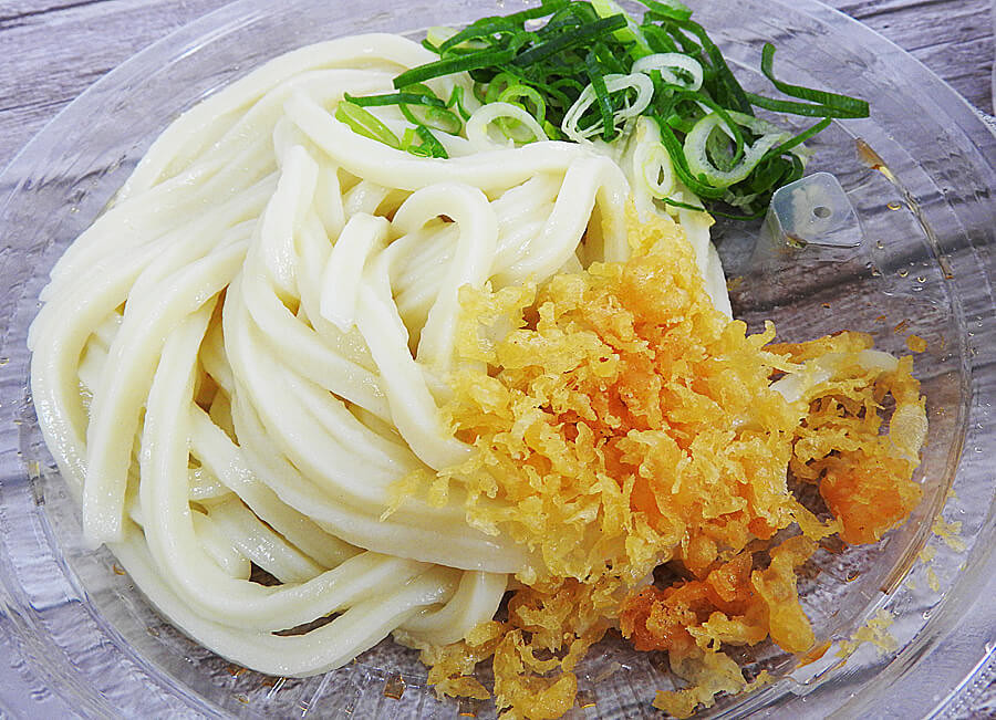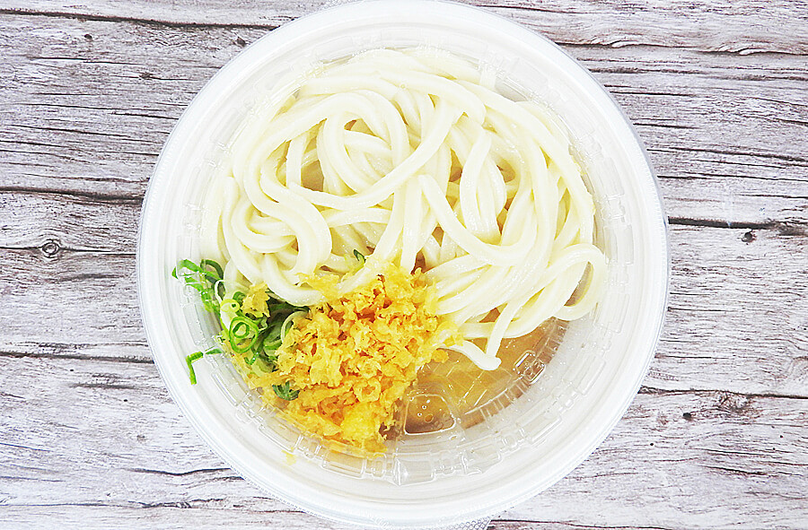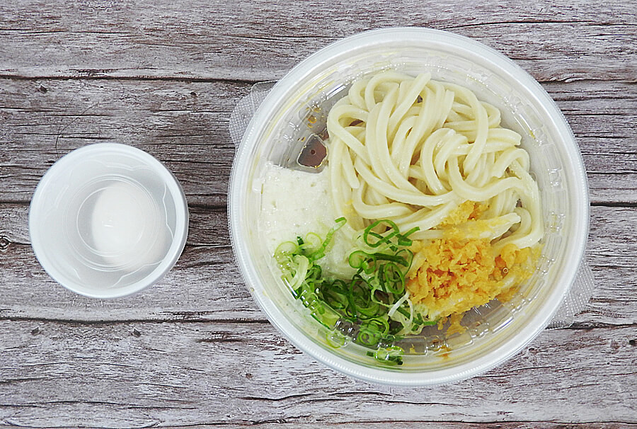 うどん及びうどんにかける天かすやねぎは、店員さんに告げると入れてくれますよ。また、天ぷらやいなりを入れるお持ち帰り専用の容器などが店内に置いてあるので、会計後自分でつめましょう。
