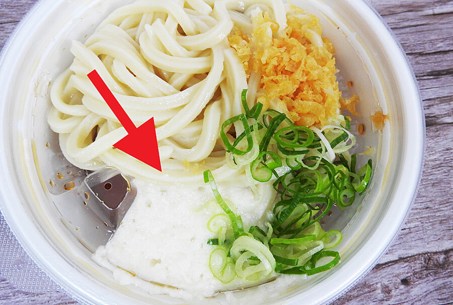 上段にとろろを含むトッピングが入っていますが、とろろを取るのが難しいなと思いました。最終的にはスプーンですくい出しましたが、この辺は改善して欲しいところですね……。