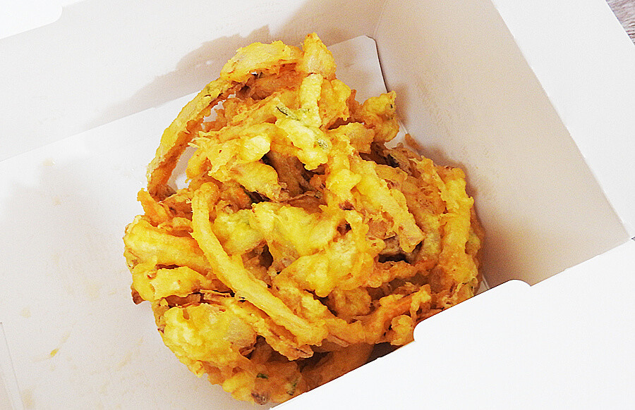 私が利用している丸亀製麺では、天ぷら類もお持ち帰りOKでしたので「野菜かき揚げ」を持ち帰ってみました。丸亀製麺のかき揚げは食べたことがないので楽しみです。