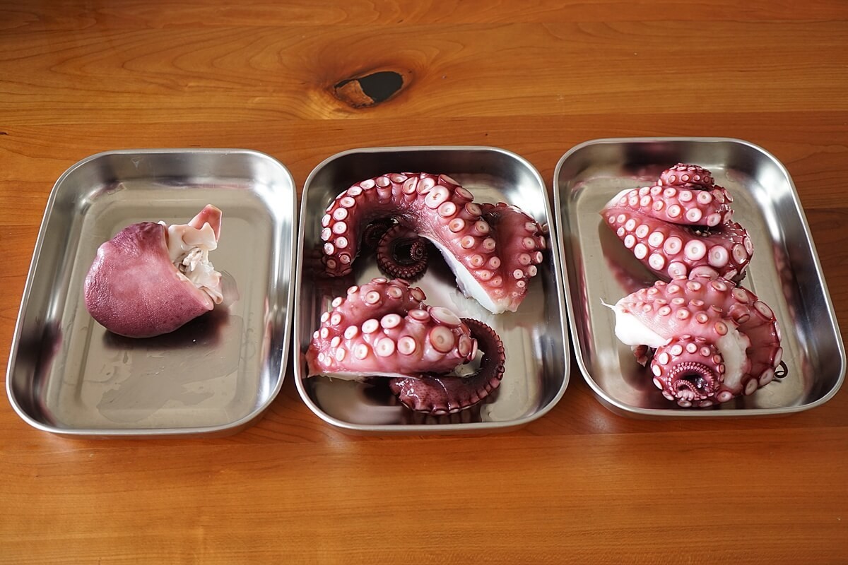 - お皿にカットした刺身用蒸し真だこを並べます。